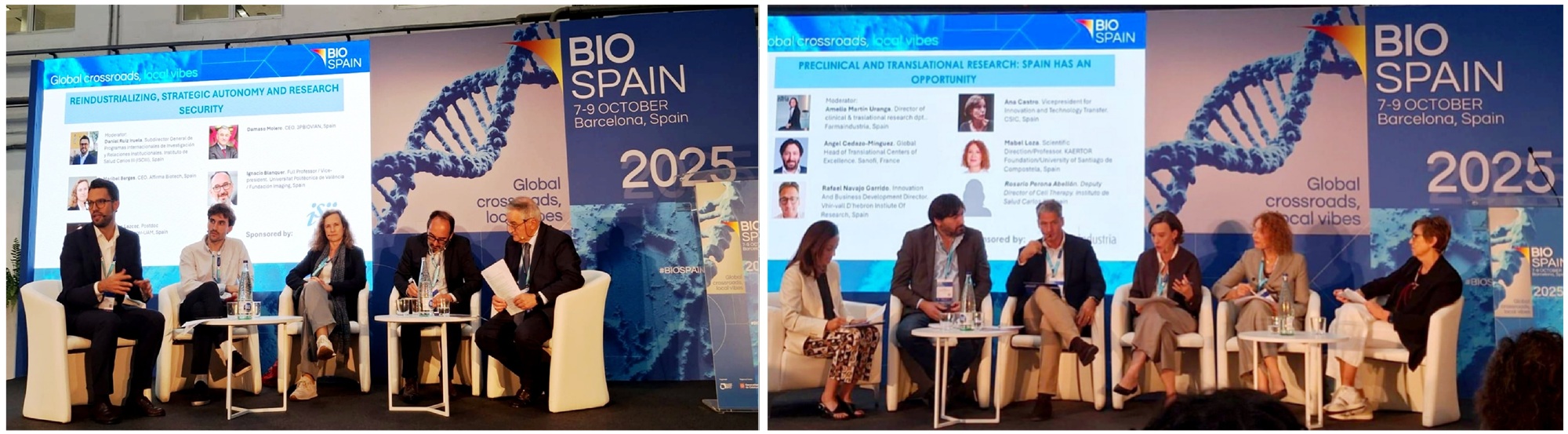 Las dos sesiones con participación de subdirectores del ISCIII: a la izquierda, con presencia de Daniel Ruiz Iruela (SG de Programas Internacionales de Investigación y Relaciones Institucionales), y a la derecha, con Rosario Perona (SG de Terapia Celular).