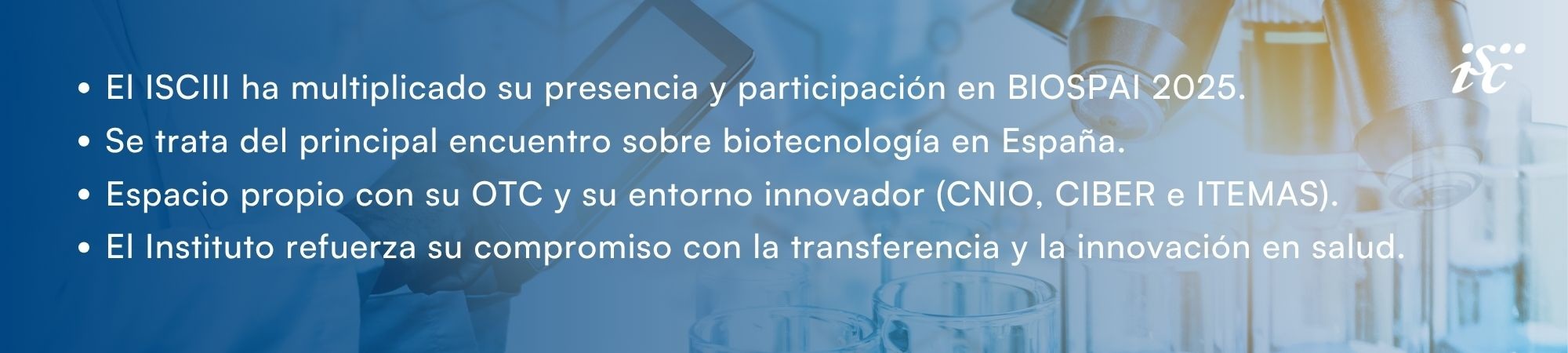 El Instituto de Salud Carlos III (ISCIII) ha participado en BIOSPAIN 2025, el principal encuentro sobre biotecnología que se celebra en España, y uno de los principales a escala internacional. El ISCIII, como muestra de su creciente implicación en esta cita, ha ejercido como sponsor Platinum de una reunión a la que han acudido representantes de la comunidad científica biotecnológica y numerosos agentes del ámbito industrial de la innovación que trabajan en ciencia y tecnología. La presencia del Instituto ha sido mucho más importante en esta edición, aumentando de forma exponencial su peso en el desarrollo del evento y reafirmando la importancia del sector salud en el ámbito biotecnológico.