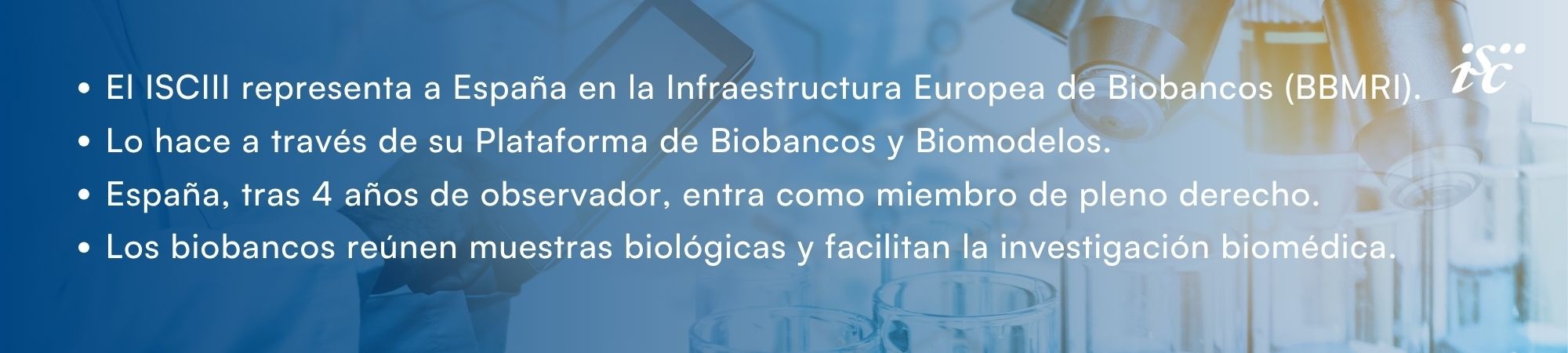 El Instituto de Salud Carlos III (ISCIII), como organismo dependiente del Ministerio de Ciencia, Innovación y Universidades, lleva años actuando como representante de España en la gobernanza de BBMRI-ERIC (junto al propio Ministerio), una infraestructura europea de investigación centrada en biobancos, a través de su Plataforma de Biobancos y Biomodelos (PISCIIBB).
