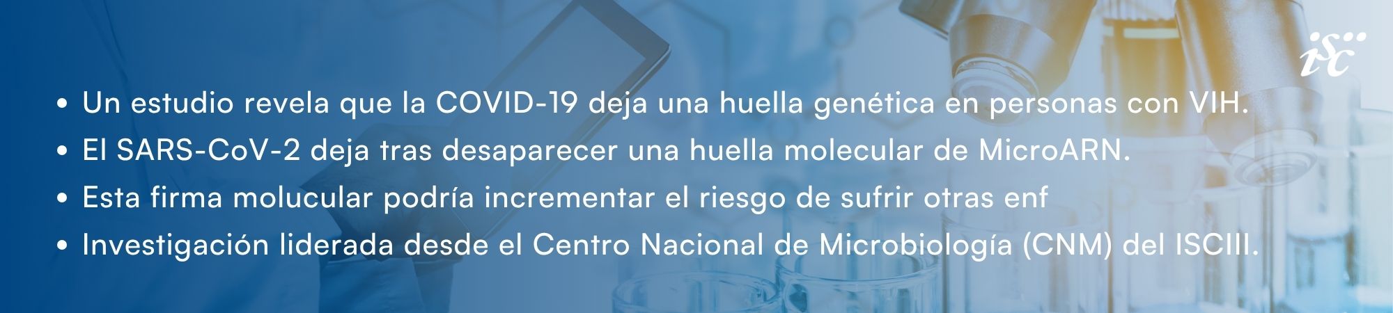 - Referencia del artículo: Grande-García S, Llamas-Adán M, Crespo-Bermejo C, Lara-Aguilar V, Arca-Lafuente S, Martín-Carbonero L, Ryan P, Santos IL, de Lagarde M, Mican-Rivera R, Moreno S, Resino S, Berenguer J, Briz V, Fernández-Rodríguez A; Multidisciplinary HIV/Hepatitis Viral Coinfection Group (COVIHEP) and of the CoRIS cohort. Beyond COVID-19 in people with HIV: Specific miRNA expression profile persist after SARS-CoV-2 clearance. J Infect Public Health. 2026 Mar;19(3):103108. doi: 10.1016/j.jiph.2025.103108. Epub 2025 Dec 13. Erratum in: J Infect Public Health. 2026 Apr;19(4):103167. doi: 10.1016/j.jiph.2026.103167. PMID: 41456474.
